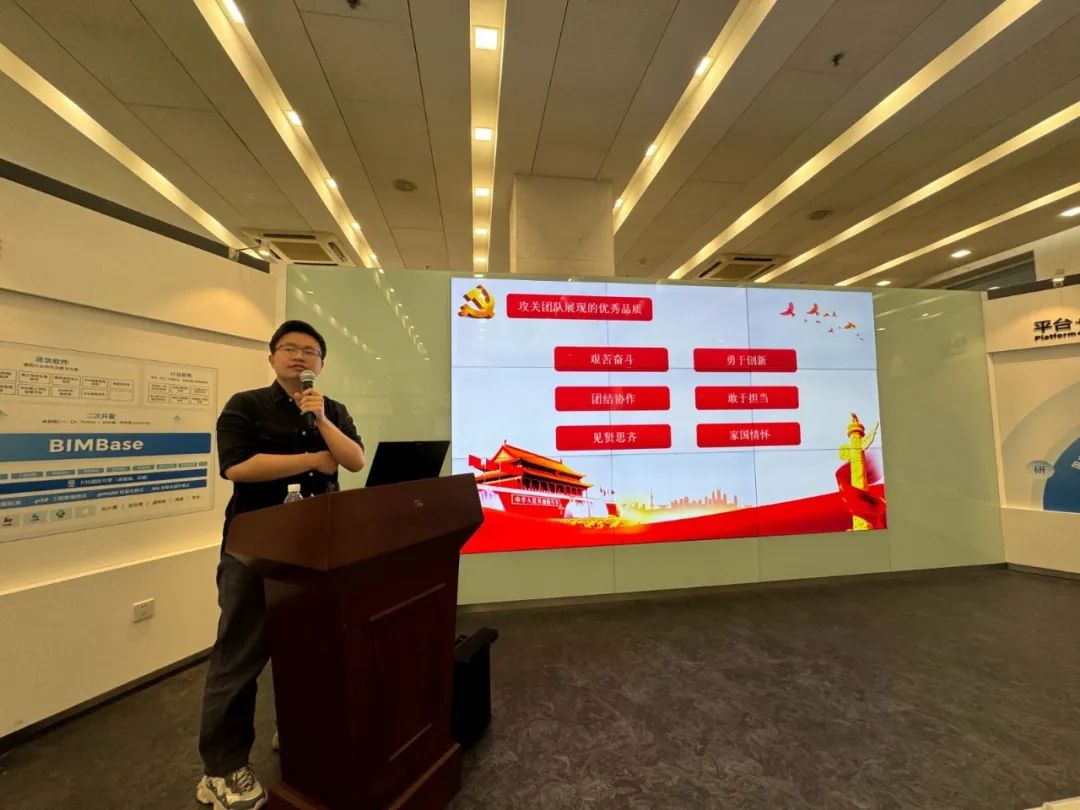 中建研科技黨委辦公室主任周一航、構(gòu)力科技副總經(jīng)理張曉龍、構(gòu)力科技第四黨支部全體黨員,以及構(gòu)力科技BIMBase研發(fā)中心、CAE部門核心骨干參加本次黨課。