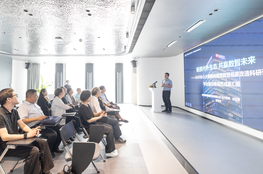 會前,馬恩成一行參觀了SADI樓頂創意園和企業文化中心。會后,參會人員參觀了SADI自主研發的智慧樓宇系統。