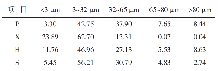 天然巖石粉的粒徑分布(%)