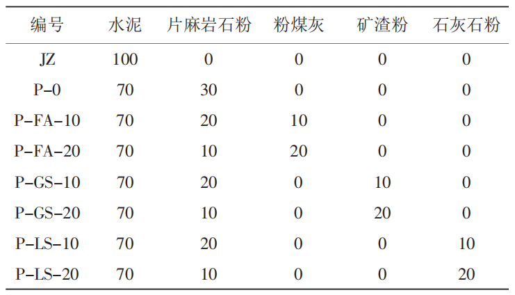 麻巖石粉與其它摻合料種類試驗(yàn)方案(%)