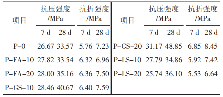 不同礦物摻合料對片麻巖石粉水泥砂強(qiáng)度的影響