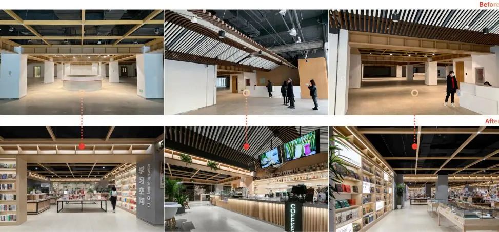 尊重原場地設計,進行了多層次、多頻率的漸進式微更新。更新的方式不只是傳統的土建裝飾,通過軟文化多層次置入,以較少的代價改變原有空間的屬性,創造新的內容運營平臺。為居民打造“美學生活方式提案平臺”一個家門口的遠方。