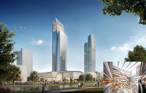 商業(yè)綜合體是將城市中商業(yè)、辦公、居住、旅店、展覽、餐飲、會議、文娛等城市生活空間的三項以上功能進行組合,并在各部分建立一種互相依存、互相裨益的能動關系,從而形成一個多功能、高效率、復雜而統(tǒng)一的綜合體。這類綜合體的設計需要滿足:高可達性、高密度集約性、整體統(tǒng)一性、功能復合性;而在內(nèi)部空間設計中需要注意:大空間尺度、通道樹型交通體系、現(xiàn)代城市景觀設計、高科技集成設施等方面的應用。