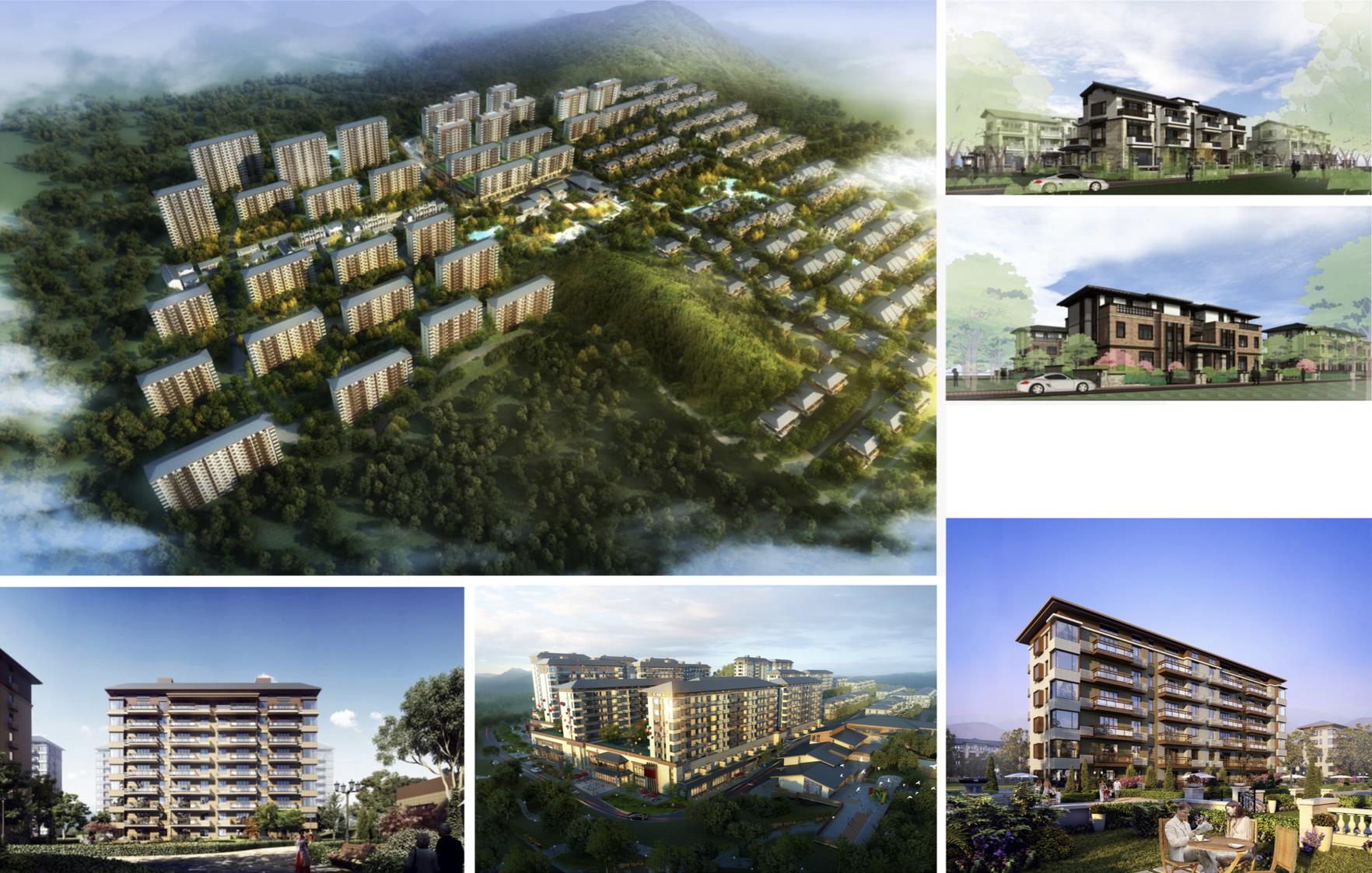 本項目占地面積52300平方米,約78畝,新建住宅建筑28棟,紅線范圍內西低東高,北高南低,然高差約16米。根據建筑類型,將場地劃分為西側洋房區(qū)和東側雙拼區(qū),洋房區(qū)依據地勢劃分為69米和74米兩個平臺,平臺內釆用院落式的布局形式,形成若干組團,組團內部營造溫馨靜謐的小環(huán)境,給住戶帶來領域感和安全感,給鄰里交往和戶外活動提供良好的空間,非常符合現代人交流的心理需要。組團之間形成開闊的視覺通廊,可觀賞整個區(qū)域的美麗景致;雙拼區(qū)依據地勢自北向南,自西向東,建筑沿宅間小路相互錯落,層層跌落,構造出豐富多樣的空間關系和富有變化的天際線。