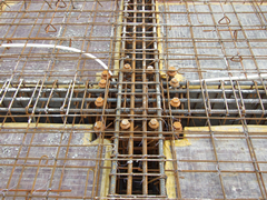 鋼筋與混凝土之間的粘結(jié)與錨固性能是混凝土結(jié)構(gòu)研究的基本問(wèn)題之一,它對(duì)結(jié)構(gòu)中鋼筋強(qiáng)度的發(fā)揮、裂縫控制、配筋構(gòu)造以及結(jié)構(gòu)的安全性均有重要影響。目前,在鋼筋混凝土結(jié)構(gòu)中,工程中鋼筋常用的機(jī)械錨固方式是使用末端帶彎鉤的構(gòu)造,90°或135°彎鉤鋼筋雖然在一定程度上增強(qiáng)了鋼筋錨固性能、減小了錨固長(zhǎng)度,但是彎折或較大的彎弧半徑構(gòu)造要求經(jīng)常帶來(lái)許多問(wèn)題,如造成梁-柱節(jié)點(diǎn)區(qū)鋼筋擁擠、彎折或彎鉤與其他鋼筋的布置互相干擾、構(gòu)件尺寸不能滿足錨固長(zhǎng)度要求等等。在使用大直徑鋼筋時(shí),這些矛盾更加突出。由我公司開(kāi)發(fā)的CABR鋼筋機(jī)械錨固技術(shù),很好地解決了這一難題,在保證鋼筋機(jī)械錨固性能的基礎(chǔ)上,優(yōu)化鋼筋錨固條件,減少鋼筋錨固長(zhǎng)度,節(jié)約錨固用鋼材,方便施工,提高混凝土澆筑質(zhì)量。