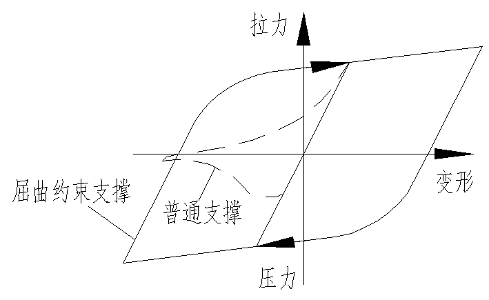 屈曲約束支撐主要通過金屬材料發生塑性屈服來吸收和消耗能量。屈曲約束支撐的滯回表現為金屬材料的滯回特性,其滯回曲線一般為矩形或為屈服后有一定剛度的平行四邊形。常用的恢復力模型為雙線性模型