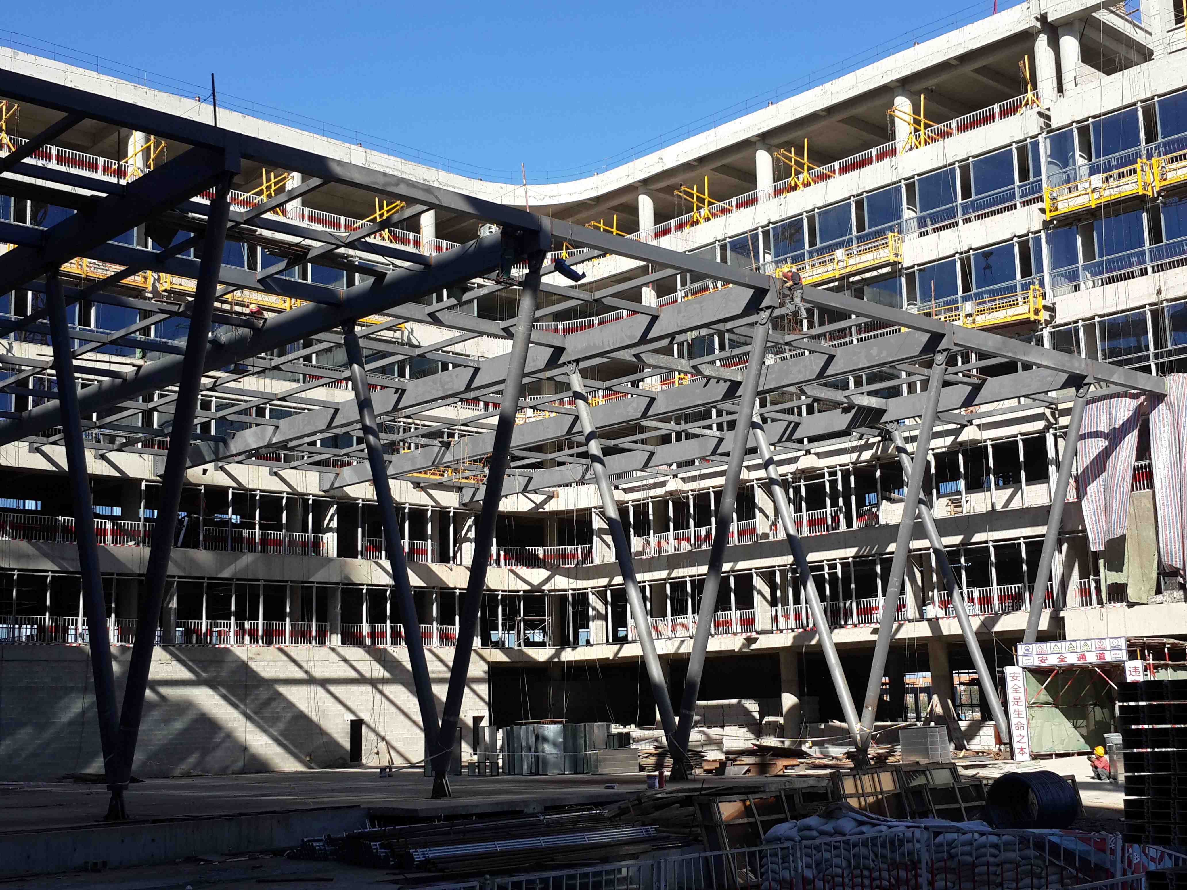 鋼結構施工。空間管桁架相貫連接,結構造型復雜。