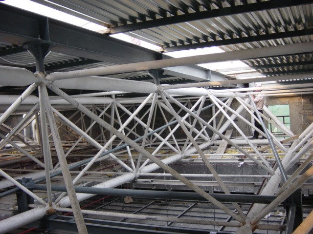 網架結構加固設計施工,包括鋼板幕墻,鋼吊頂,體外索加固網架。