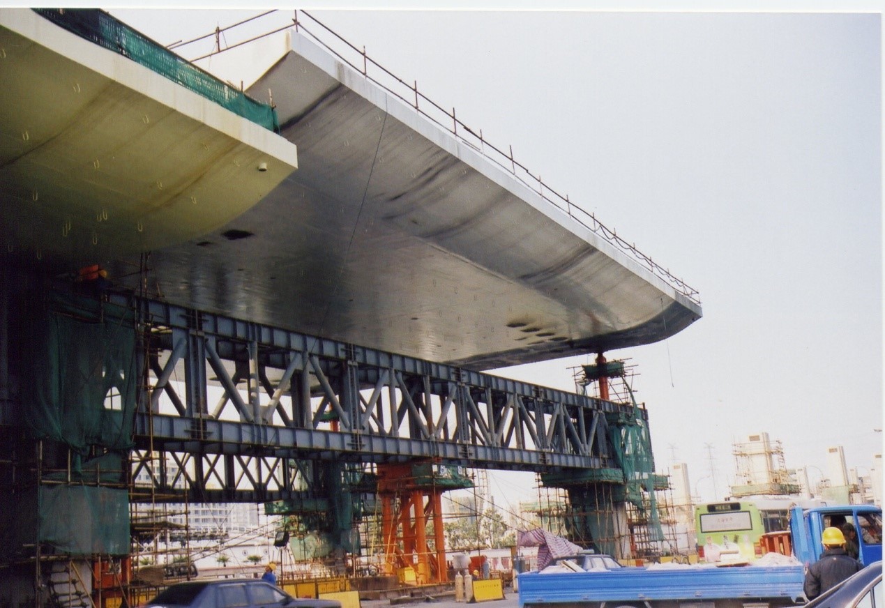 鋼箱梁滑移下降特種施工。采用“首聯(lián)拼裝、橋面組裝、頂推就位,液壓下降”方案,最大滑移單元重約800噸。